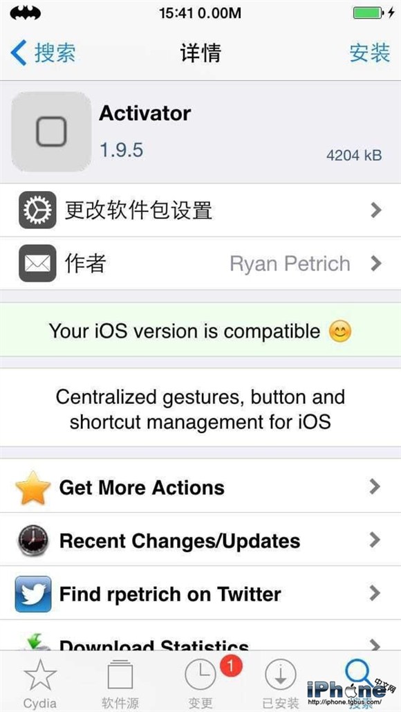 為解決iOS8.4手勢插件Acticitor出現安全模式的問題,其作者Ryan Petrich又放出了一個Activator的Beta版本,該Beta版本支持iOS8.4的越獄,想要下載該Beta版本的用戶需要先添加Ryan的源(http://rpetri.ch/repo/),然後搜索Activator(1.9.4 beta 1)。