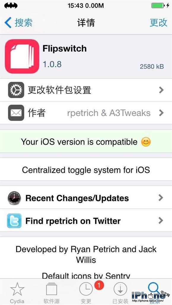 要進行更新的話,用戶只需打開Cydia並點擊更新一欄進行刷新即可,最新的Activator正式版為1.9.5,而Flipswitch的版本則為1.0.8,如果你之前使用的是這兩個插件的Beta版的話,插件的更新是應該會出現在更新一欄的。
