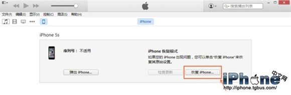 2、按住電腦鍵盤上的shift鍵,同時用鼠標左鍵單擊iTunes的“恢復iPhone”,切記,一定要同時按住兩個。