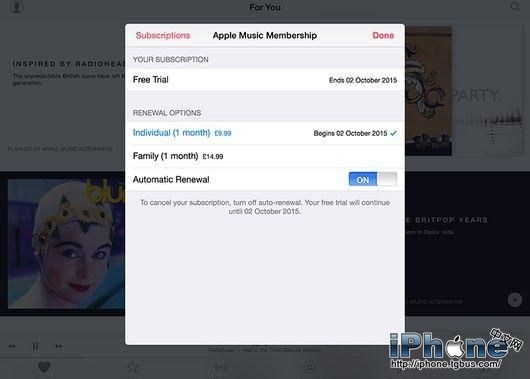 在3個月試用期結束後,用戶將被視為同意為該服務付費。如果這不是你所希望的,可以進入賬號信息頁面,選擇“View Apple ID”(查看Apple ID),點擊“Subscriptions”(訂閱)下面的“Manage”(管理)按鈕,選擇“Apple Music”,然後關閉“Automatic Renewal”(自動翻新)功能。這樣,到期後蘋果便不會自動扣費了。