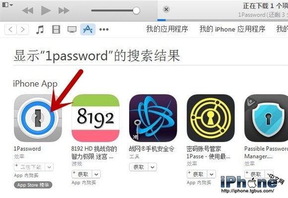我們以需要固件iOS8以上的「1Password」為例,正常情況下如上圖所示,會提示升級固件。