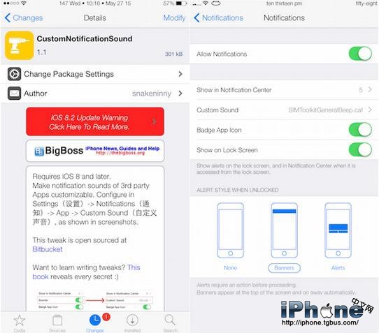 想要修改iPhone第三方應用的通知推送聲音,我們可以借助一個名為CustomNotificationSound的插件來實現。