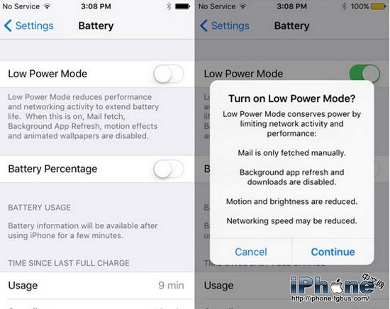 電池續航:通過環境光線和近距離傳感器,現在你的iPhone可感知何時屏幕朝下,也不會打開屏幕,即便是收到通知信息。另外,正常情況下,iOS9延長了一個小時的電池續航時間,而添加了新的低功耗模式(Low Power Mode)可讓設備延長3個小時的續航時間,在低電量情況下,iOS9會提示你切換至低功耗模式。