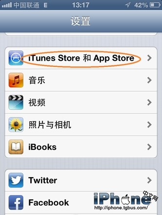 2、然後在設置選項裡,找到“iTunes Store 和 App Store”,點擊進入,如圖所示;