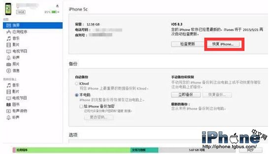 3、一直等待數據備份完成,點擊“恢復iPhone”按鈕,這時分為兩種情況:(1)如果 iTunes內已有最新固件就會自動刷機;(2)如沒有,iTunes會自動下載最新的固件,下載完 後才呢過後開始恢復你的iPhone,下載具體時間你的網絡決定。