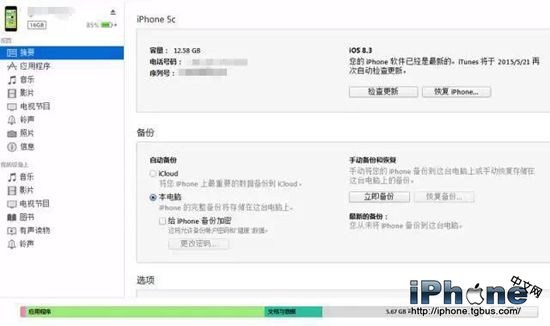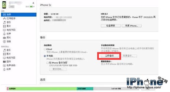 2、連接電腦,電腦會自動識別你iPhone(前提是你已經安裝有iTunes軟件),進入 iTunes後會看到如上圖的界面,此時點擊“備份”,開始備份你手機數據。