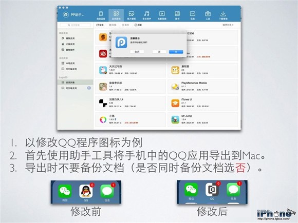 2. 首先使用助手工具將手機中的QQ應用導出到Mac。