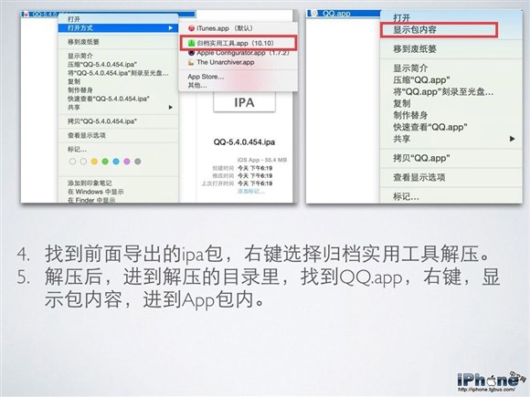 5. 解壓後,進到解壓的目錄裡,找到QQ.app,右鍵,顯示包內容,進到App包內。