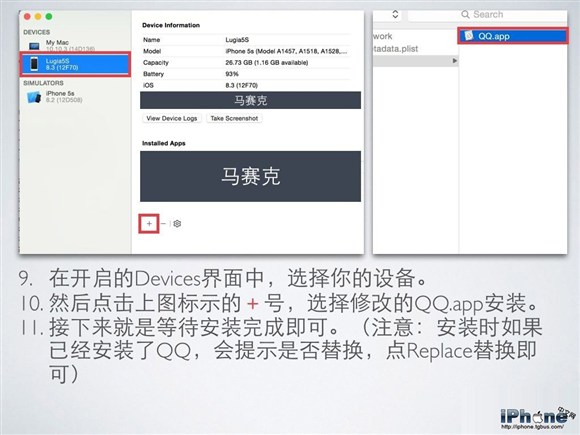 10. 然後點擊上圖標示的 + 號,選擇修改的QQ.app安裝。