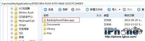 2、使用iTools,打開文件系統,程序(用戶),找到百度視頻,然後打開名為“***.app”的文件夾(例如百度視頻的是“BaiduIphoneVideo.app”)。