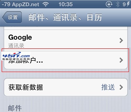 6.帳戶添加完成之後回到設置 -> 郵件、通訊錄、日歷,點擊獲取新數據