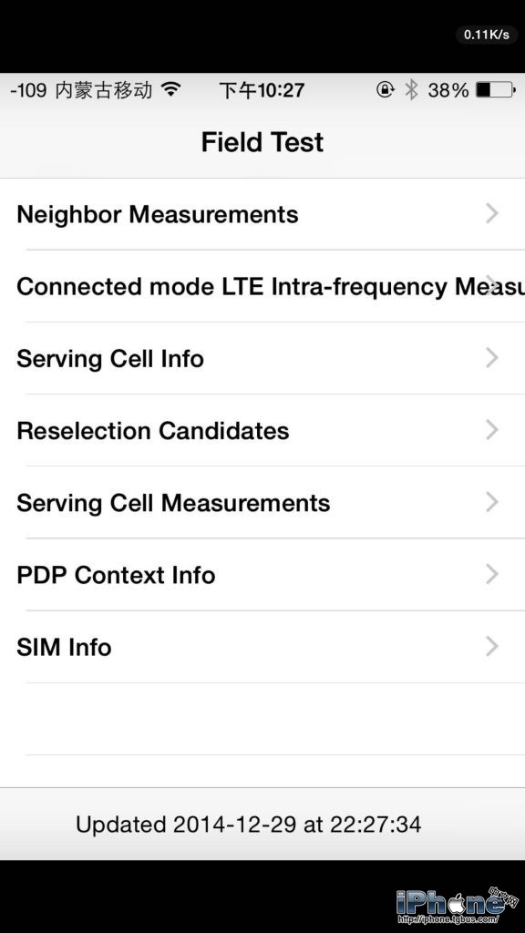2、在撥號鍵盤上輸入*3001#12345#*,然後按下“呼叫”按鈕,iOS內置應用Field Test就被啟動了,同時左上角也出現了信號強度的精確值。