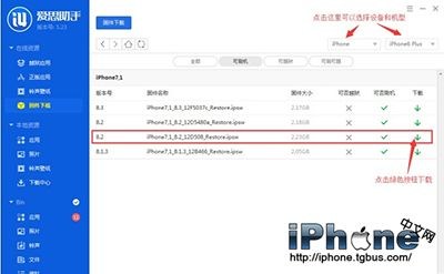 1、下載安裝好愛思助手最新版本之後連接手機,到愛思助手“在線資源-固件下載”區下載手機相對應的iOS 8.3固件,點擊即可下載。