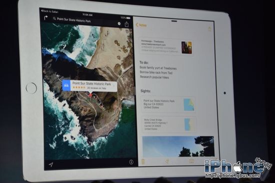在iPad上,iOS 9將針對大尺寸屏幕提供更多新的操作方式,如側滑多任務切換、分屏應用等,更好的利用了大屏的優勢。iPhone上顯示的應用可以自動作為分屏多任務中的一屏進入iPad屏幕中,實現更加無縫的使用體驗。