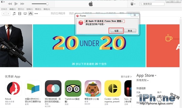 遇到“此Apple ID尚未用於iTunes Store,請查看您的賬戶信息”這個提示,我們要做的就是,順著iTunes的提示一步步地操作,在iTunes Store裡輸入你的蘋果ID,然後把資料補全了,就可以順利登錄了。
