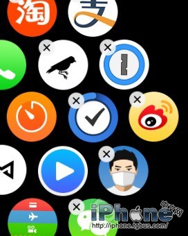 點擊並按住Apple Watch屏幕上的應用程序圖標後輕按圖標上的「X」按鈕;