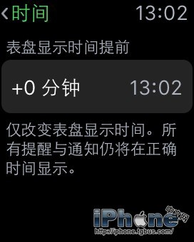 約會怕遲到?你可以手動設置顯示時間提前5分鐘(這一設置不會影響你的鬧鐘,通知和其他時區的時間),但它會在手表表面上做出改動。如果你有這個需求,轉到「設置」-「時間」-「+0 分鐘」部分,然後旋轉數碼表冠來設置(這段提前時間可設置長達59分鐘)。