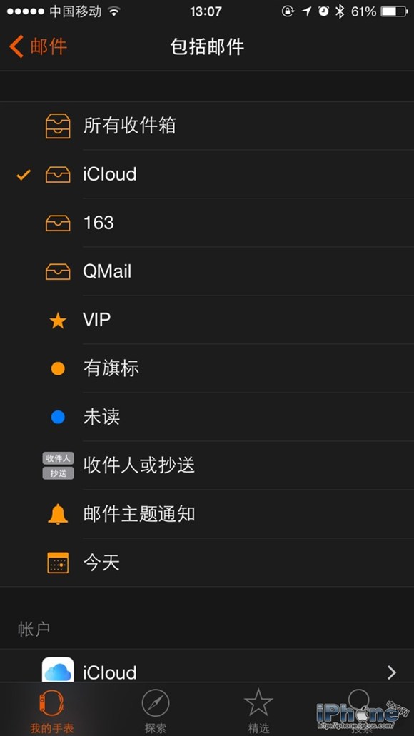 18. 選擇在Apple Watch上顯示的郵箱