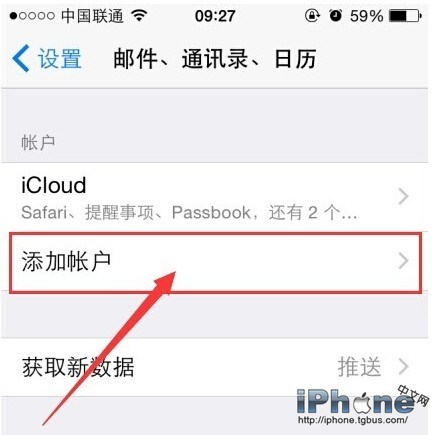 3在【郵件、通訊錄、日歷】點擊【添加賬戶】