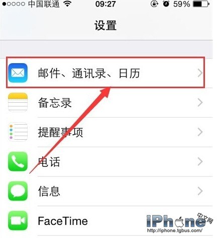 2進入【設置】以後,找到並打開【郵件、通訊錄、日歷】