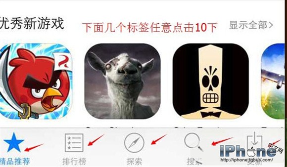 出現上述情況的時候,你可以對著底部的任意一個標簽按鈕連擊10次,App Store就會立即強制刷新,就是這麼簡單粗暴。