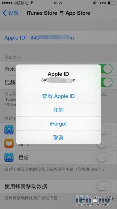 2.點擊你的Apple ID,出現提示框,點擊“注銷”;