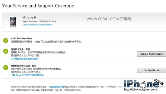 如果購買的是正品iPhone6 Plus則會查詢到到剩余的保修日期,其保修日期是從激活後開始算起,保修期為一年,根據查詢到的時間,可以知道iPhone6 Plus激活時間和剩余保修日期,如下圖所示。
