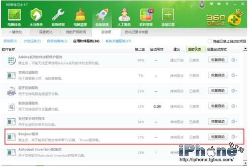 如果你有安裝各種不同的系統支持軟件,那麼你要看看你是不是禁用了一些iPhone支持必須的後台服務。當然,如果你確實禁止了,開啟開機啟動即可。