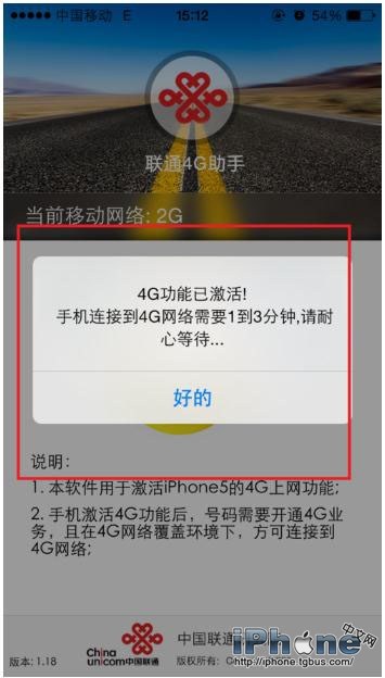 1、電信版iPhone5無法通過該軟件支持聯通4G,型號為A1528的iPhone5S也不用嘗試。