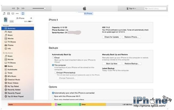 2. 開啟iTunes後,先做備份。請點擊【立即備份】(Back Up Now),此刻iTunes將自動同步設備並建立備份。