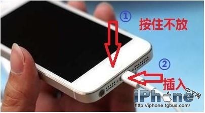 2、首先啟動你的電腦端iTunes,將USB數據線的一頭連接上電腦,按住Home鍵,然後將數據線另一頭插入手機,這個過程請不要松開Home鍵。