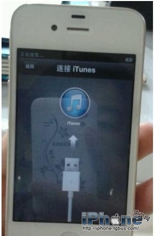 3、在手機屏幕看到連接iTunes提示時,松開Home鍵,如下圖所示。