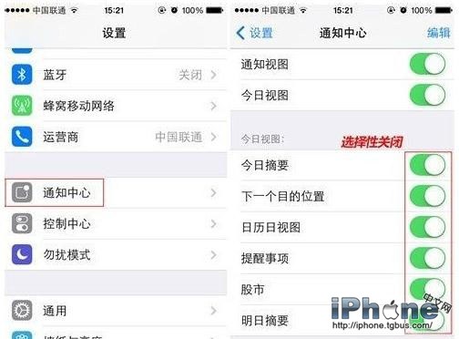 打開“設置”——“通知中心”,在這裡我們可以選擇性的關閉一些不需要的系統提醒、以及應用提醒。
