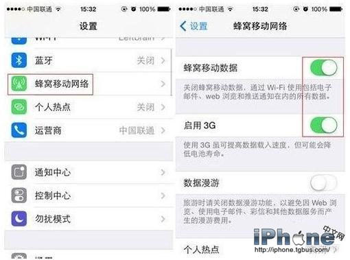 當我們不上網時最好關閉蜂窩數據。打開“設置”——“窩蜂移動網絡”,進入之後可以在不需要網絡時選擇關閉“蜂窩移動數據”和“啟用3G”這兩個選項。此外,向下拉菜單還可以關閉一部分實際並不需要蜂窩網絡應用的程序。