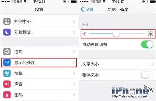 打開設置——顯示與亮度,屏幕背光是iPhone的耗電大戶,把屏幕亮度降到最低,能有效提升iPhone提升續航力。