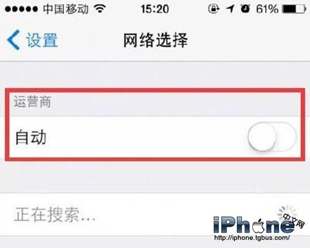 一般來說,iPhone在插入手機SIM卡後就會自動匹配,接入相應的運營商網絡,但有不少網友發現有手機信號不好或者顯示無服務的情況,可以手動選擇運營商網絡。在設置中進入運營商選項,關閉“自動”功能,稍等片刻會出現網絡運營商可選,用戶只需根據自己的手機卡選擇對應的運營商即可。