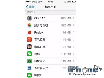 你可以在“設置”-“通用”-“用量”當中查看到每款應用的空間占用,然後將那些占用空間大但並不是必需的應用刪除。