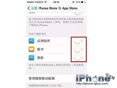 如果你開啟了該功能,你在iPad上下載的內容會自動安裝在iPhone上。雖然很實用,但這肯定會讓手機出現變慢的情況。想要關閉該功能,你依然需要進入“設置”-“iTunes Store和App Store”-“自動下載的項目”,然後將其中的所有開關關閉。