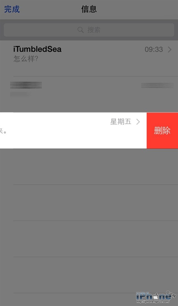你可以一次性刪除和某人的所有信息對話,你只需要在所有對話列表視圖中找到對應的對話線程,然後向左滑動手指,點擊右側的“刪除”按鈕即可。刪除該對話線程後你仍然可以和其進行對話,只是原先的信息都已經被刪除了。
