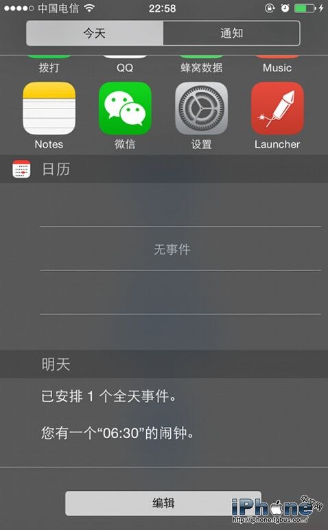 第二步:下拉通知中心,點編輯,將launcher 添加到通知中心。