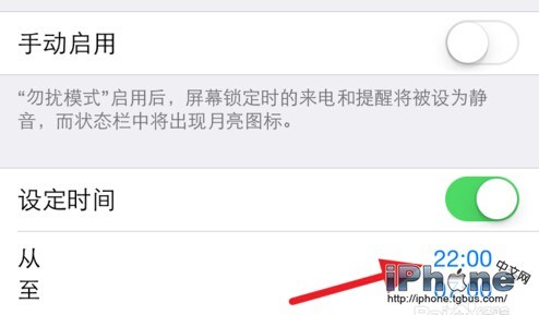 默認的時間是晚上10點到早上7點,點擊時間可以進行修改