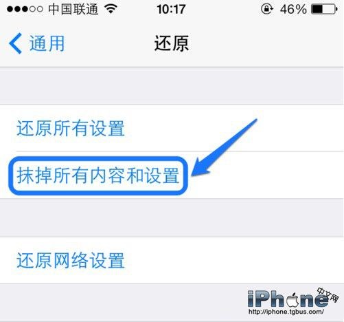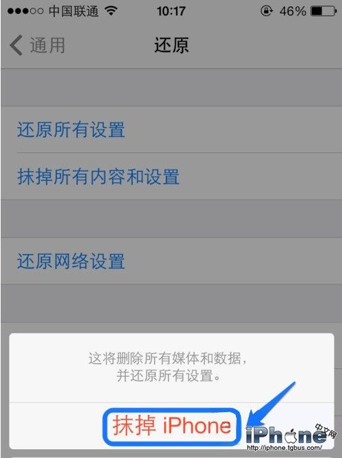 6、最後選擇“抹掉iPhone”選項即可把手機還原到出廠狀態,這樣就完成了iPhone6 Plus恢復出廠設置的操作。