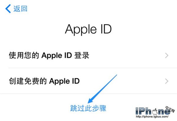 5、接著系統會詢問我們是否要用Apple ID賬號來登錄,如果有的話,可以在這裡直接登錄。如果沒有的話,請點擊“路過此步驟”選項,激活成功以後也是可以登錄的,所以不必擔心。