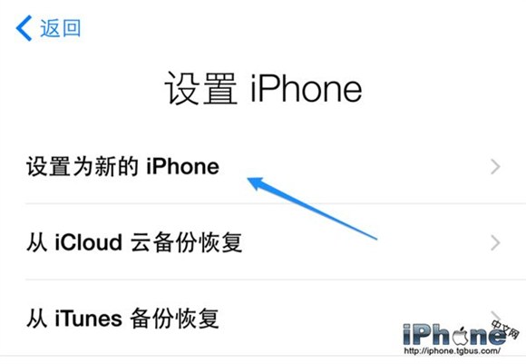 4、然後可以選擇從備份中恢復(主要是針對之前也是使用過蘋果手機的用戶),一般情況下,我們選擇“設置為新的iPhone”選項,如下圖所示。
