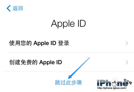 接著會詢問我們是否要用 Apple ID 賬號來登錄,如果有的話,可以在這裡直接登錄。如果沒有的話,請點擊“路過此步驟”選項,激活成功以後也是可以登錄的,所以不必擔心。