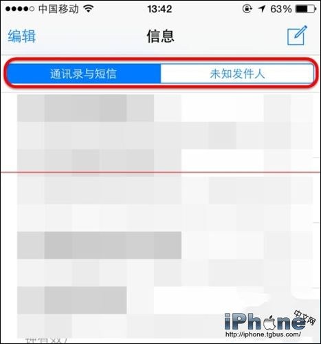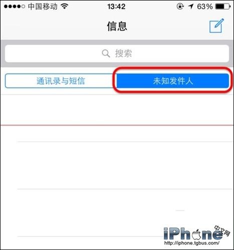 5、在打開【信息】,在搜索框下方可以看到【通訊錄與短信】和【未知發件人】兩個標簽了。