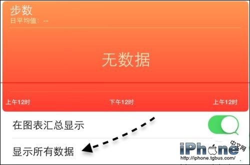 2、對於這樣的情況,主要是由於系統的Bug造成的,在當前最新的 iOS8.2 系統一樣存在該問題,此時我們進入步數的詳細信息界面,再點擊“顯示所有數據”選項,如圖所示。