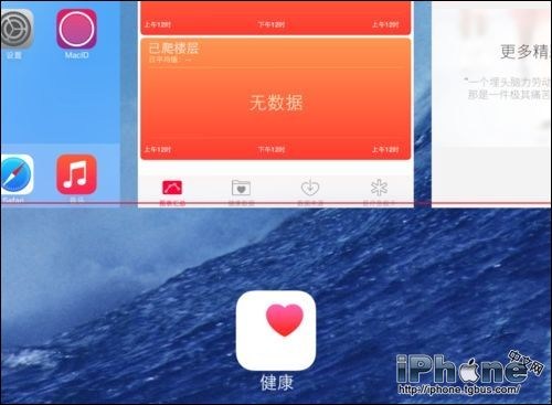 4、首先我們可以嘗試連續按下二次“主屏Home”按鈕,打開多任務管理以後,在後台退出“健康”應用,然後再打開,看看是否有效果。