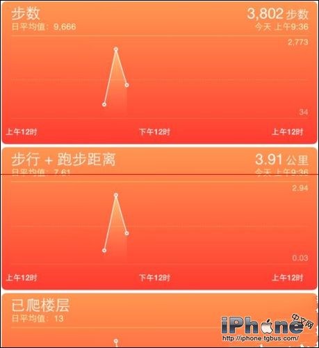 6、等重啟 iPhone 手機以後,我們再打開“健康”應用,此時可以看到所有的數據又恢復正常顯示了。