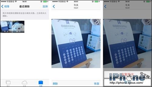 在iOS8中,新增了“最近刪除”相薄,所有你刪除的照片都會顯示在這裡。如果一不小心誤刪了照片,只需要進入“最近刪除”即可恢復,非常的簡單。